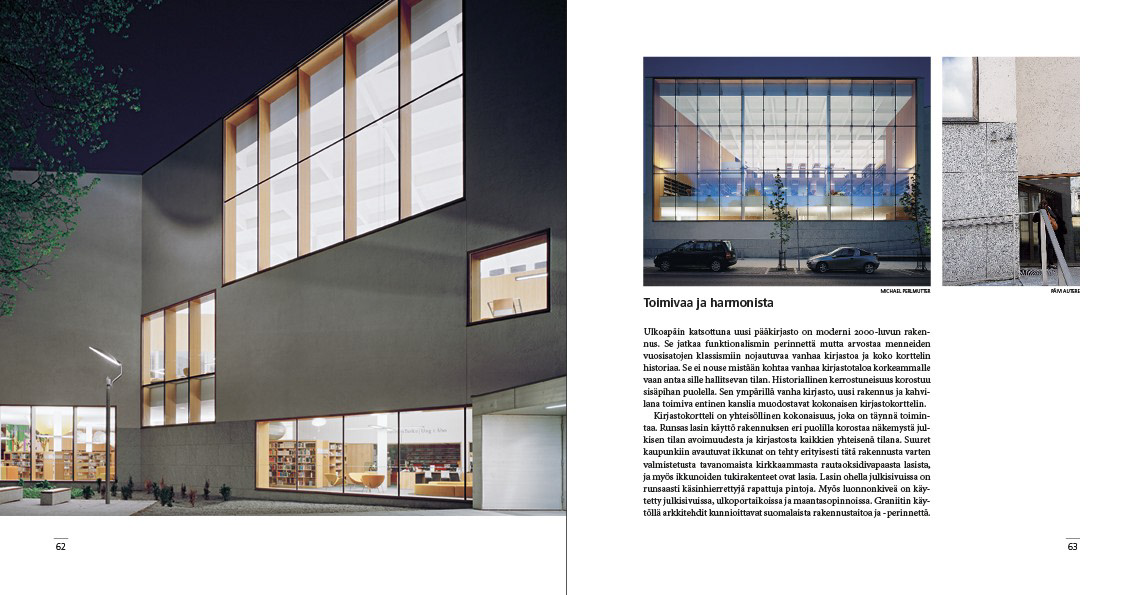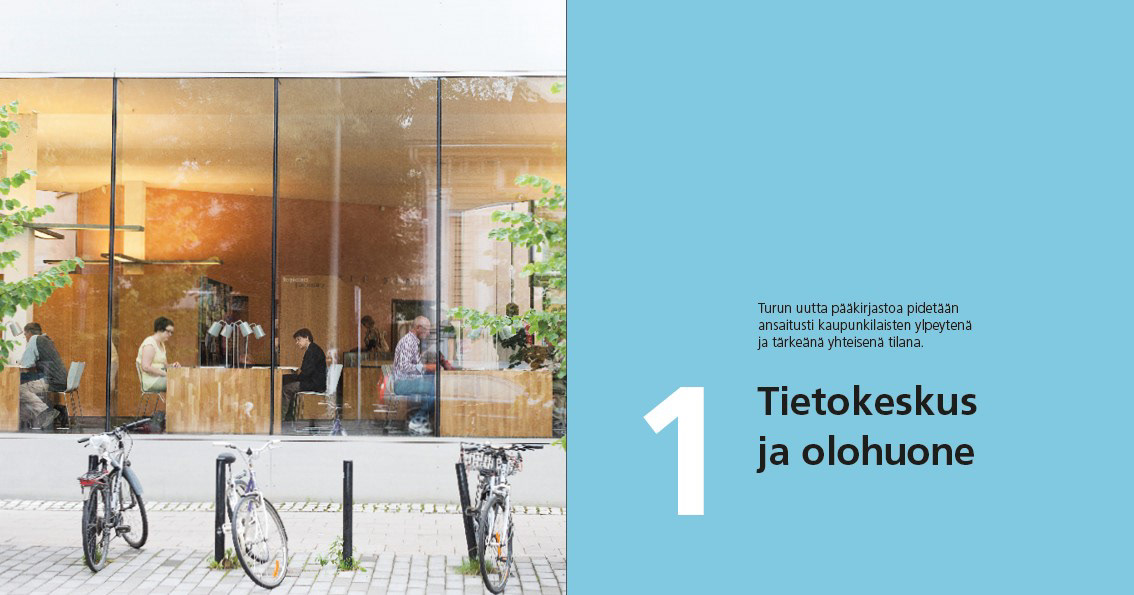 Design for a book about Turku City Library's new library building, 2012.